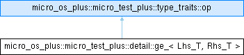 Inheritance diagram for micro_os_plus::micro_test_plus::detail::ge_< Lhs_T, Rhs_T >:Public Member Functions | |