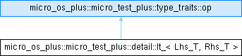 Inheritance diagram for micro_os_plus::micro_test_plus::detail::lt_< Lhs_T, Rhs_T >:Public Member Functions | |